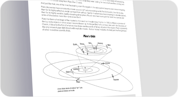 NEW HORIZONS Why Pluto and the Kuiper Belt? The Science of New Horizons In May 2005, scientists trained the mighty Hubble Space Telescope on Pluto and its large moon, Charon, in a continuing search for additional satellites around the solar system’s only binary world. After weeks of processing, analysis, checking and double-checking, they found what they were looking for: two small satellites circling two to three times farther away from Pluto than Charon. And just like that, one of the most fascinating scientific targets in the solar system became even more intriguing. Pluto discoveries have consistently shown us a scientifically interesting world: first for its orbit, then for its size, then for its highly reflective, exotic-composition surface, then for its enormous moon (making it a double planet), then for its highly variable, rapidly escaping atmosphere. Pluto’s new moons are just the latest in a spectacular series of discoveries made from and above Earth. Pluto has been a harbinger of the mysteries that await on the planetary frontier. In 1930, it offered a preview of the icy, rocky objects in what would become known as the Kuiper Belt; half a century later, with the discovery of Charon, it became the first of what we now know are thousands of binary objects in the region. Pluto is presently the only known Kuiper Belt Object with multiple moons – but as history indicates, it’s likely just the first glimpse of other incredible scientific finds. Pluto’s Orbit Venus Sun Mercury Mars Earth Uranus Jupiter Saturn Pluto Neptune Arrows indicate direction of rotational “north” pole; planets and distances not to scale. Owing to the great scientific interest in Pluto, and also in the ancient, icy Kuiper Belt of The Third Zone miniature planets, smaller worlds and comets, The Kuiper Belt is often called the “Third Zone” of our planetary system, swirling beyond the U.S. National Academy of Sciences ranked both the inner zone of rocky planets (Mercury, Venus, Earth and Mars) and the middle a Pluto-Kuiper Belt mission its highest priority zone of the gas giants (Jupiter, Saturn, Uranus and Neptune). The Kuiper Belt is the for a New Frontiers mission start in this decade. largest structure in our planetary system, holding an estimated 100,000-plus miniature New Horizons is that mission. worlds with diameters larger than 100 kilometers, and the source of short-term comets. 8 NASA’s First Mission to Pluto and the Kuiper Belt