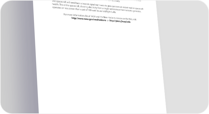 NEW HORIZONS compositions and temperatures, and examine Pluto’s atmospheric composition and structure. New Horizons also will study the small moons recently discovered in the Pluto system. The spacecraft will “sleep” in electronic hibernation for much of the cruise to Pluto. Operators will turn off all but the most critical electronic systems and monitor the spacecraft once a year to check out critical systems, calibrate instruments and perform course corrections, if necessary. The spacecraft will send back a beacon signal each week to give operators an instant read on spacecraft health. The entire spacecraft, drawing electricity from a single radioisotope thermoelectric generator, operates on less power than a pair of 100-watt household light bulbs. For more information about NASA and the New Horizons mission on the Web, visit: http://www.nasa.gov/newhorizons or http://pluto.jhuapl.edu NASA’s First Mission to Pluto and the Kuiper Belt 3